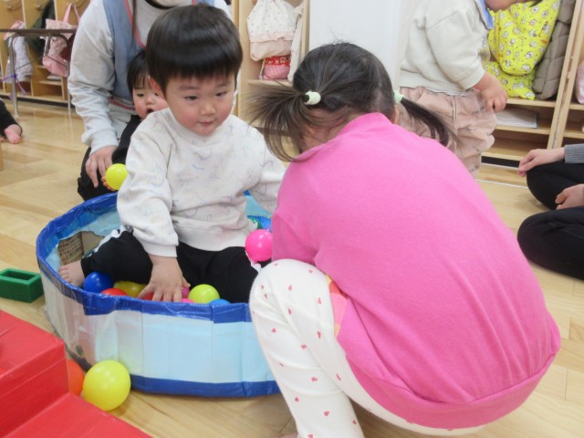 ももさん(2歳児)のお友達と一緒にお楽しみ会をしました。